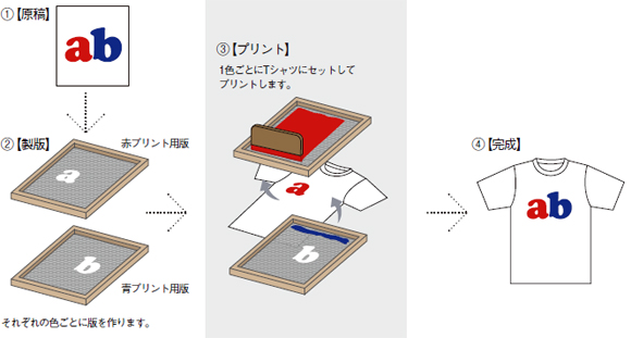一般的にプリントされている方法で、1色ごとに版を作成して
